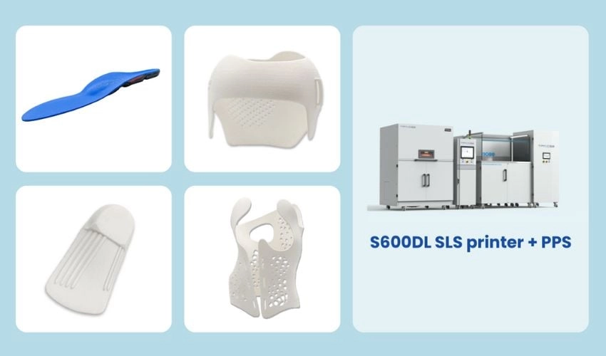 They utilize the TPM3D S600DL system, an advanced SLS printer featuring dual 140 W lasers with a sizeable build platform. This printer adheres to EU safety standards and enhances print quality via its unique coordination algorithm. Edser highlights this system’s capability for manufacturing large parts with intricate designs, essential for customized orthotics.